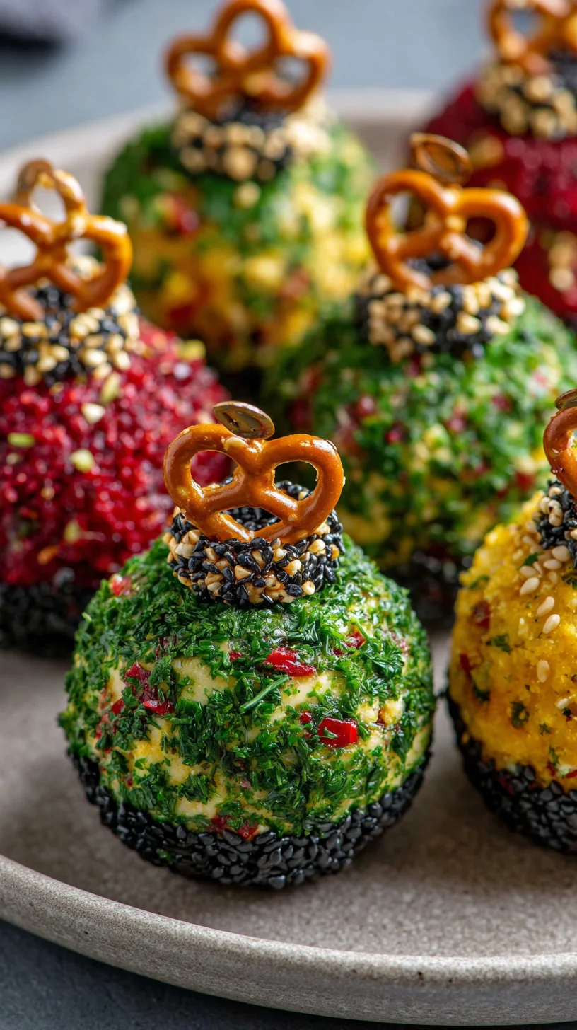Festive & adorable Christmas Ornament Cheese Balls! Creamy, cheesy, perfect for holiday parties. Easy to make and a guaranteed crowd-pleaser!