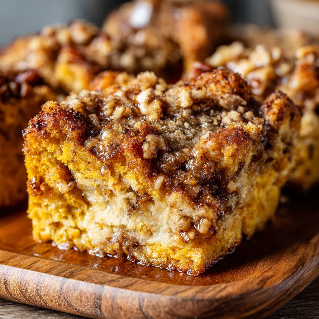 A comforting and delicious dessert that combines the warm flavors of pumpkin and pecan in a creamy bread pudding.