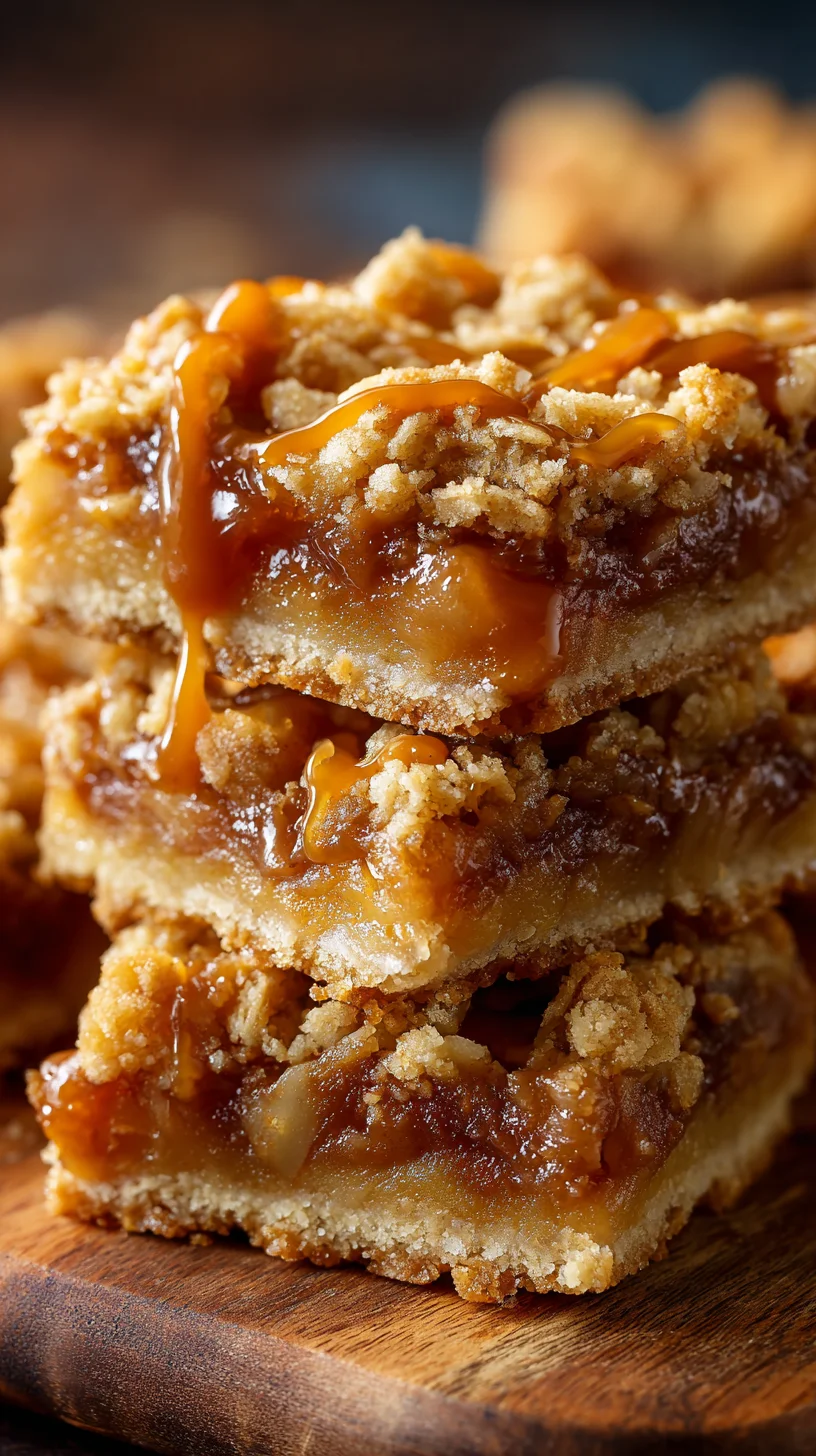Delectable salted caramel apple crumble bars featuring layers of buttery crumble, sweet apples, and a rich caramel drizzle.