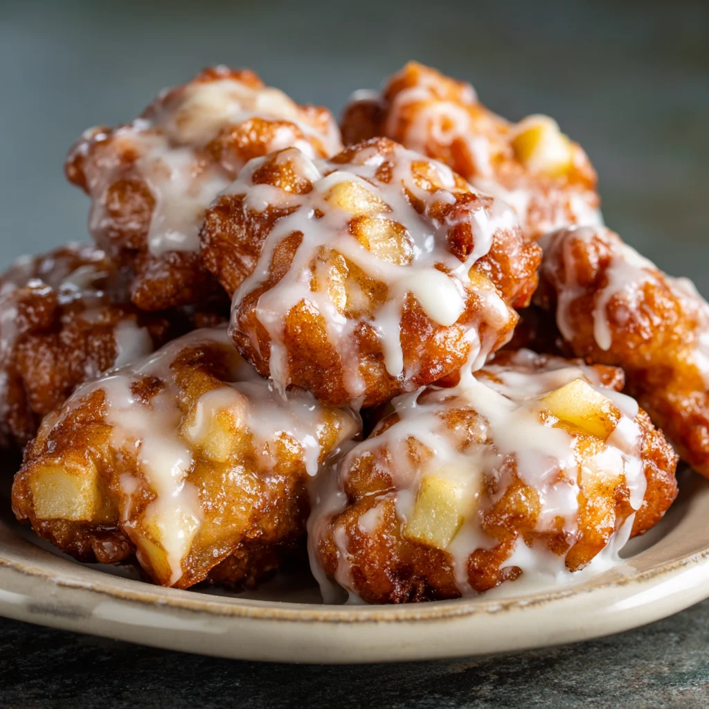 - Drizzle the glaze over the warm fritters. Serve immediately and enjoy!
